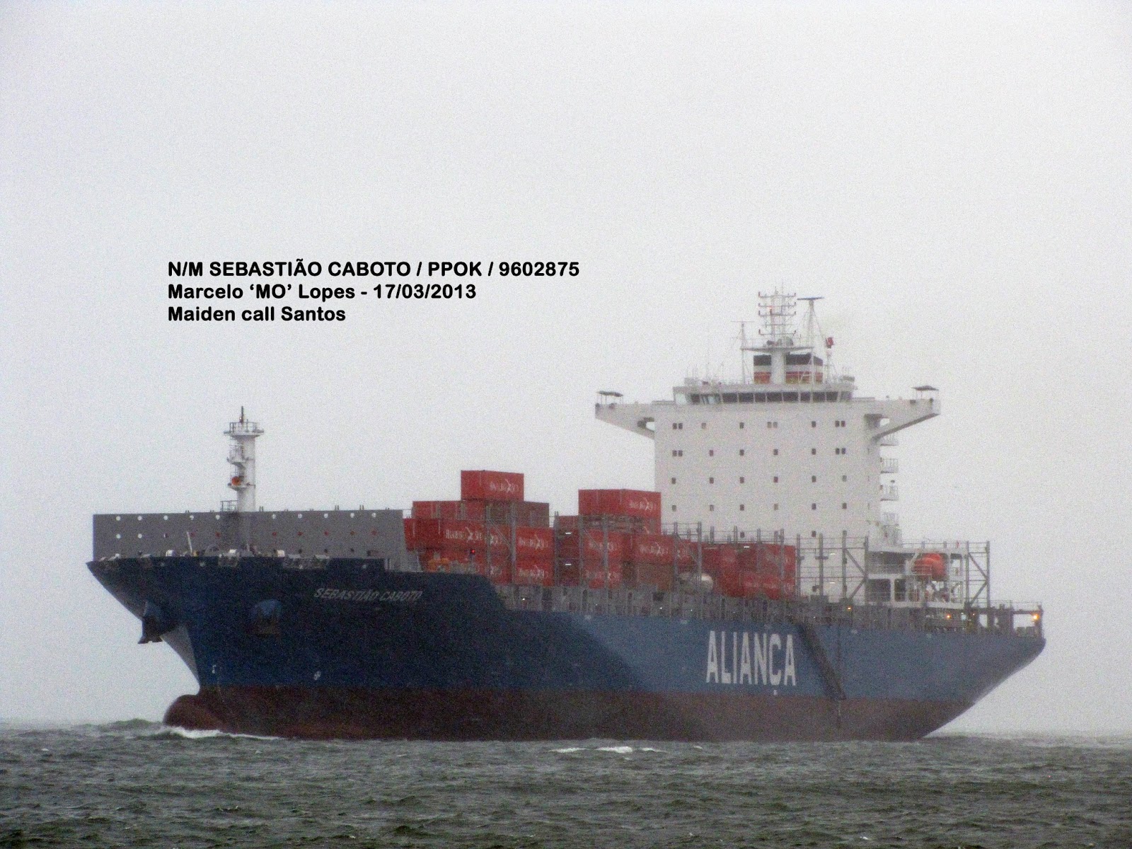 Apesar de ter sido batizado esta semana, o Sebastião Caboto já esteve em Santos pelo menos mais duas vezes, para operar no Tecon. Isso, porque já havia sido lançado ao mar no final do ano passado, pouco antes de partir em uma viagem de longo curso entre Shangai e o Brasil.