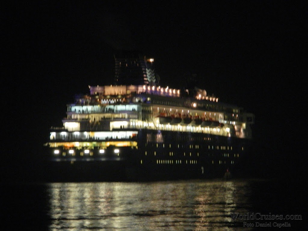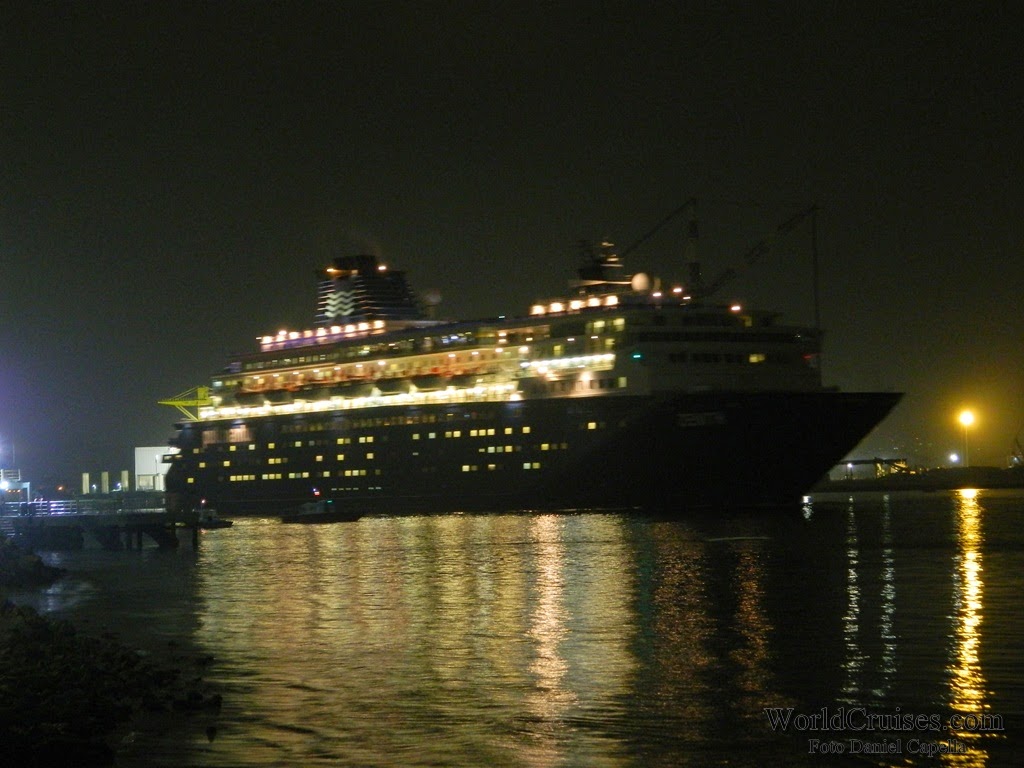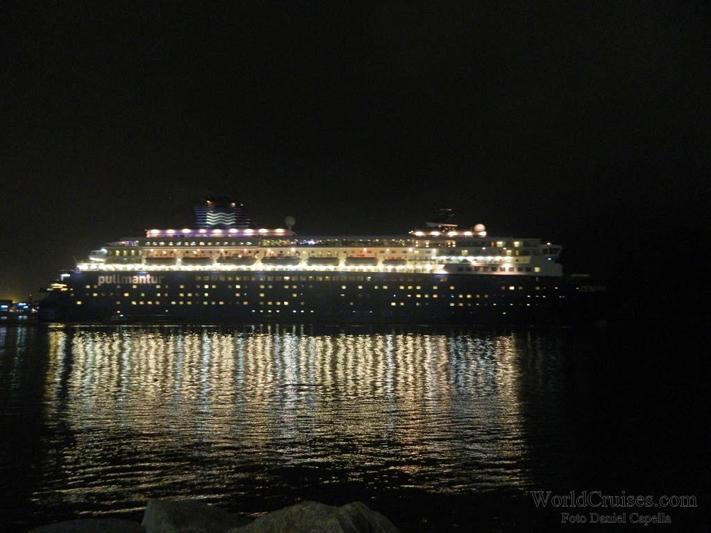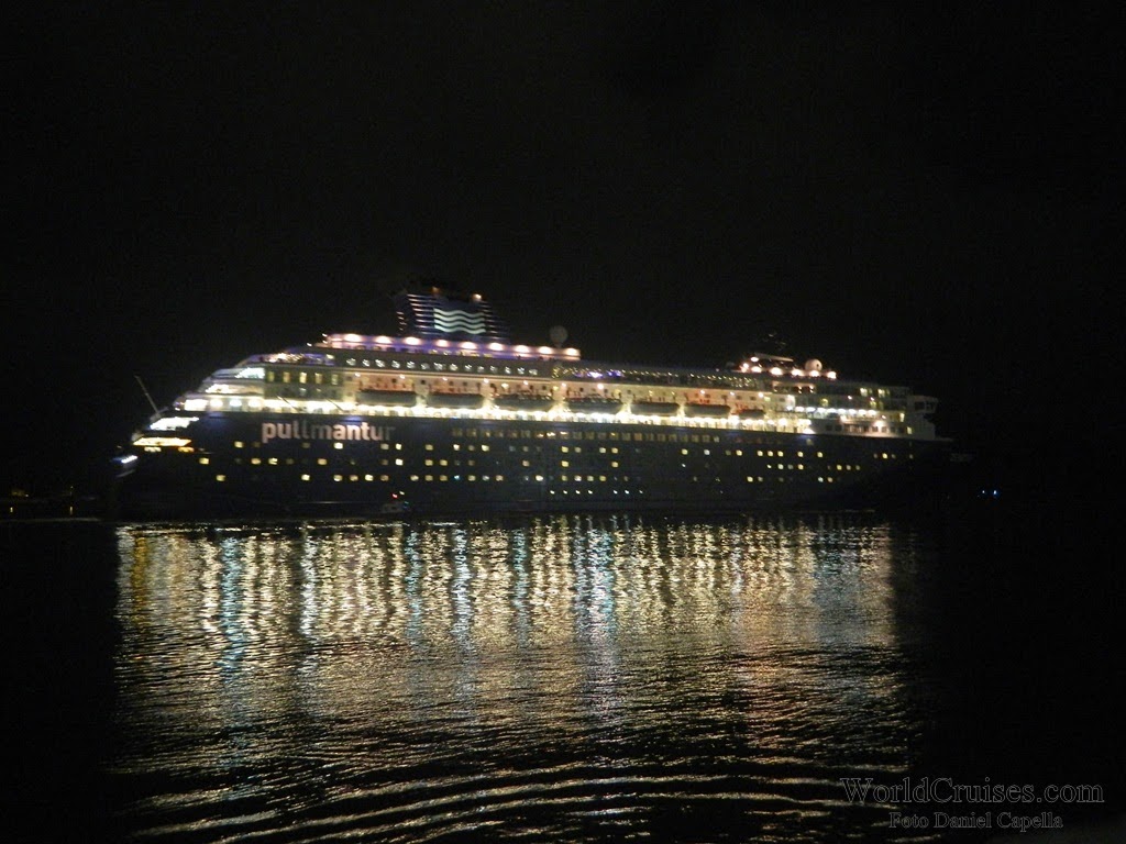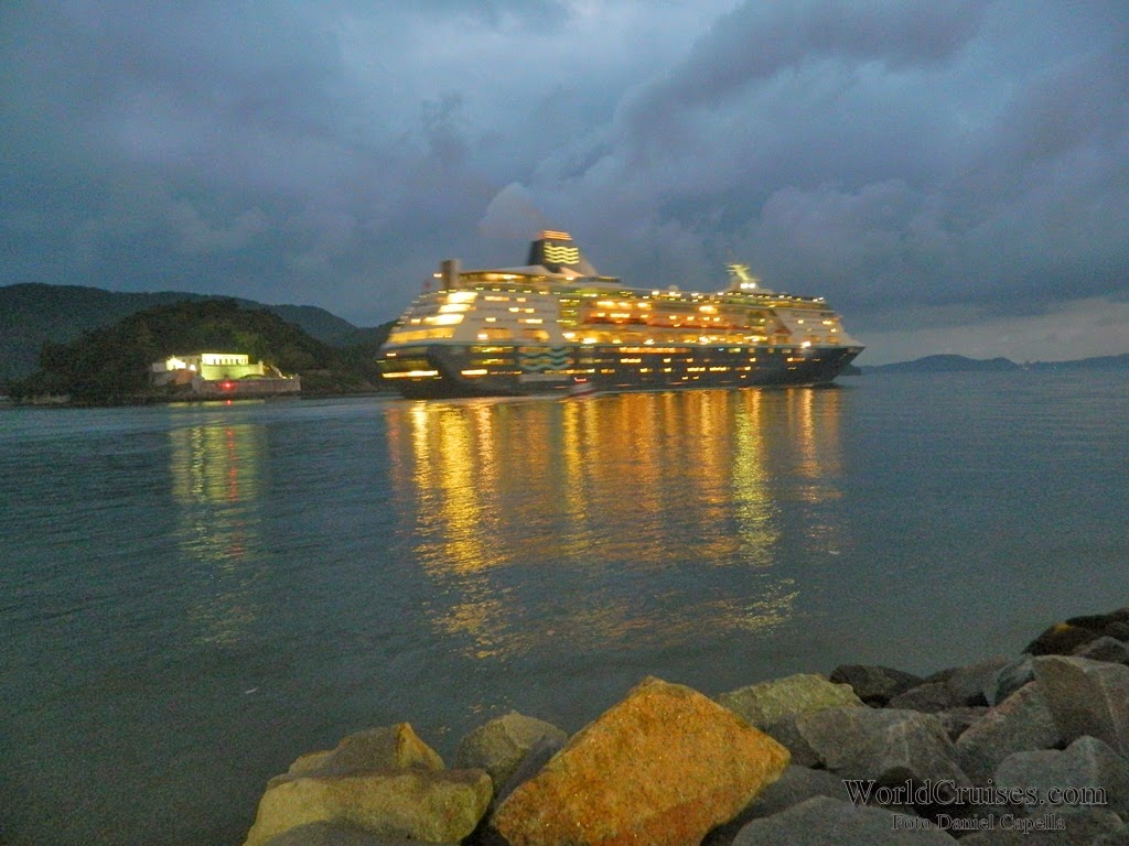 Já o Zenith, chegou pela primeira vez a Santos nesta temporada, e com suas novas cores externas. Sua última escala na cidade havia acontecido há quase um ano, quando partiu para a Europa após realizar apenas mini-cruzeiros entre o final de 2012 e meados de março de 2013. Nessa temporada, porém, pela primeira vez ficou baseado no porto de Buenos Aires, realizando cruzeiros para o público argentino. Chegou na América do Sul no final de dezembro, e parte de volta para a Europa em 25 de março, após quatro mini-cruzeiros com embarque em Santos (o último, posicional Santos – Recife, com 5 noites). Na ocasião de sua última escala na cidade, deveremos ir a bordo para registrar os novos interiores, e conhecer mais do navio, que desde a temporada 2007/2008 vem seguidamente ao Brasil. De manhã, aportou com passageiros embarcados no Rio de Janeiro para um posicional de apenas uma noite, que desembarcaram até o meio dia. Em seguida, embarcou passageiros para um mini-cruzeiro de 4 noites, com escalas em Ilhabela e Búzios. Seguiu viagem por volta das 19h30m, quando a música na piscina já era alta, e a festa acontecia nos decks superiores. Para ler mais sobre o Zenith, clique aqui.