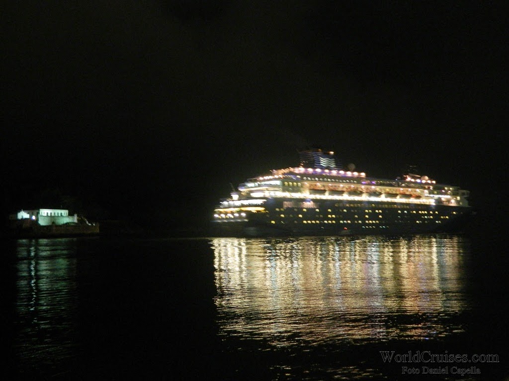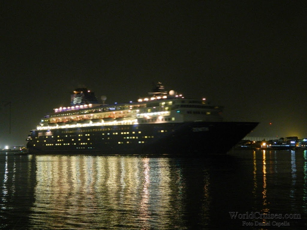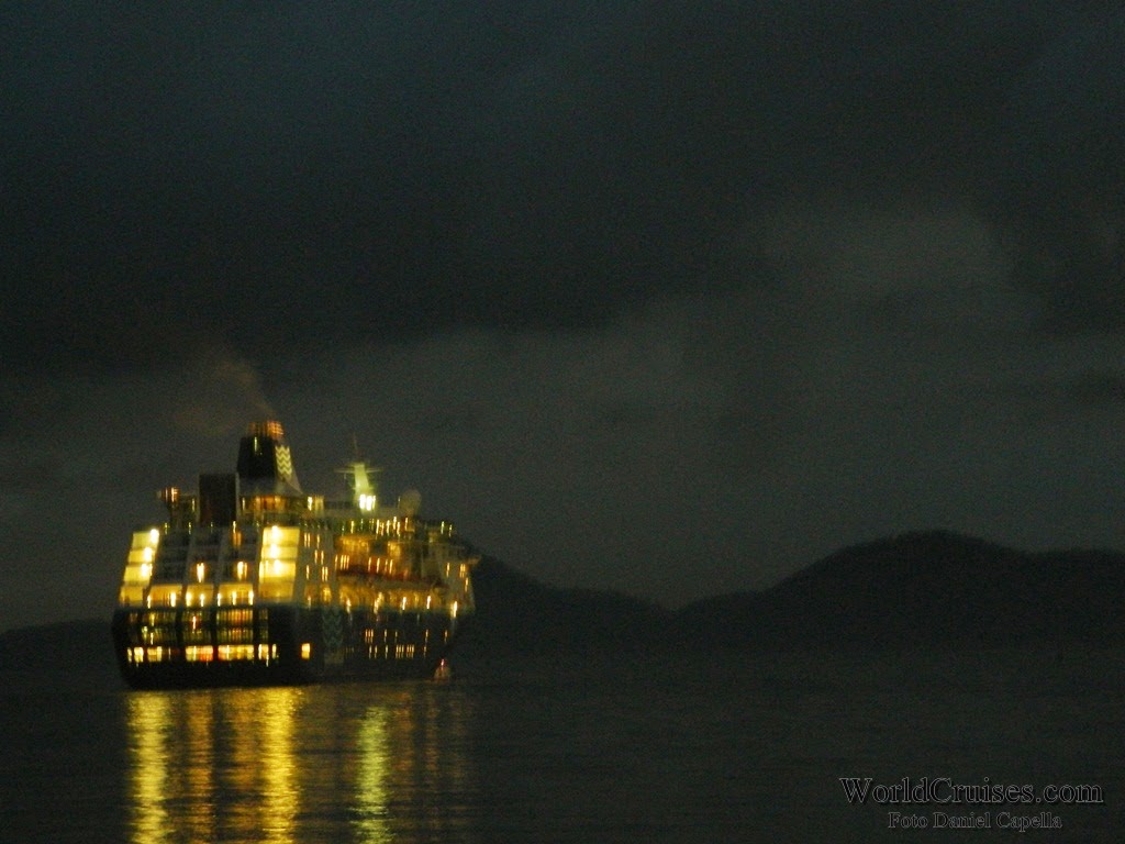 Já o Zenith, chegou pela primeira vez a Santos nesta temporada, e com suas novas cores externas. Sua última escala na cidade havia acontecido há quase um ano, quando partiu para a Europa após realizar apenas mini-cruzeiros entre o final de 2012 e meados de março de 2013. Nessa temporada, porém, pela primeira vez ficou baseado no porto de Buenos Aires, realizando cruzeiros para o público argentino. Chegou na América do Sul no final de dezembro, e parte de volta para a Europa em 25 de março, após quatro mini-cruzeiros com embarque em Santos (o último, posicional Santos – Recife, com 5 noites). Na ocasião de sua última escala na cidade, deveremos ir a bordo para registrar os novos interiores, e conhecer mais do navio, que desde a temporada 2007/2008 vem seguidamente ao Brasil. De manhã, aportou com passageiros embarcados no Rio de Janeiro para um posicional de apenas uma noite, que desembarcaram até o meio dia. Em seguida, embarcou passageiros para um mini-cruzeiro de 4 noites, com escalas em Ilhabela e Búzios. Seguiu viagem por volta das 19h30m, quando a música na piscina já era alta, e a festa acontecia nos decks superiores. Para ler mais sobre o Zenith, clique aqui