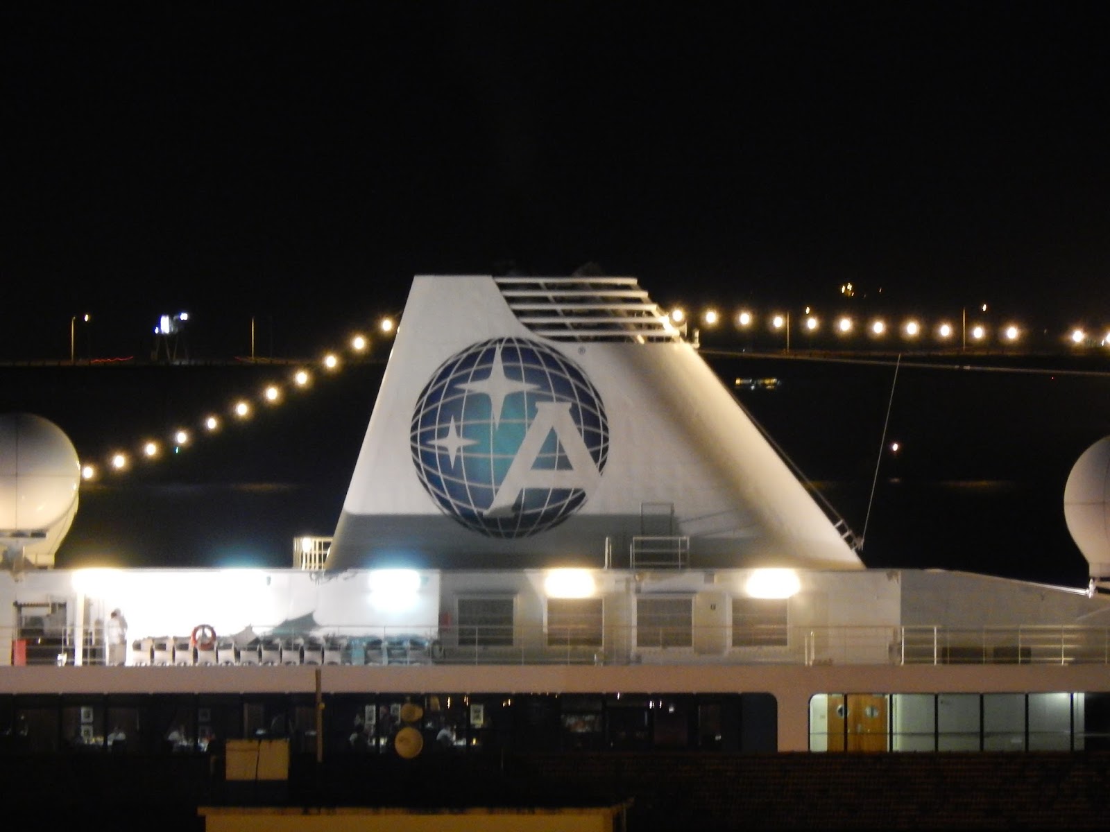 Logo da Azamara Club Cruises, na chaminé do Azamara Journey |