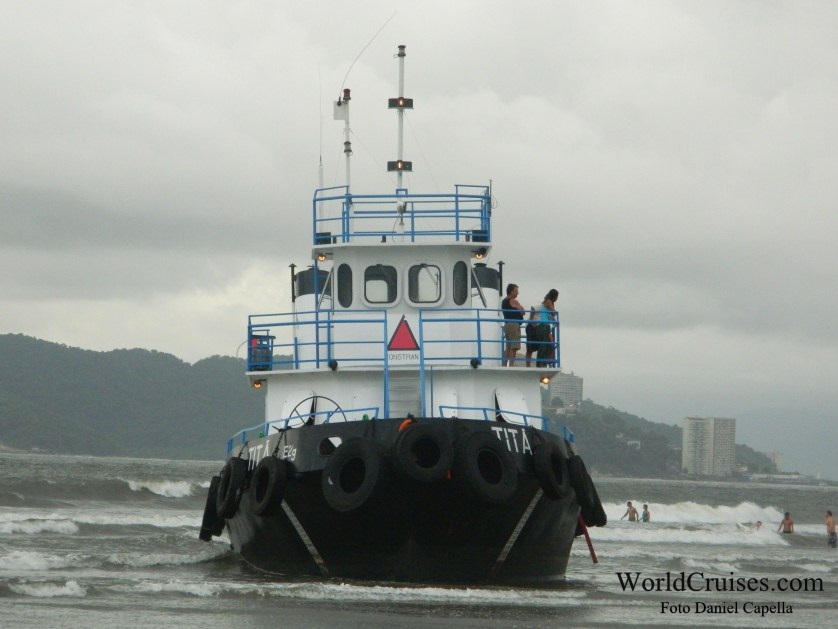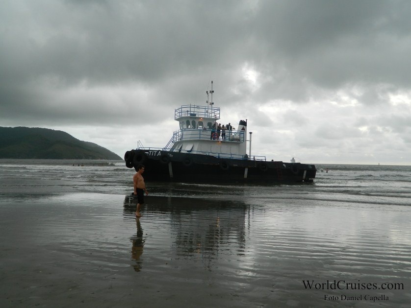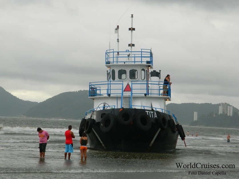 Sem força própria, a balsa, que estava sendo puxada pelo rebocador, entrava em Santos na noite deste Sábado, quando o cabo que a ligava ao rebocador, se partiu devido à forte ondulação no momento. Com o vento, que também era forte, foi empurrada para a areia, o rebocador, que teve a corda enrolada em suas hélices também acabou encalhado enquanto tentava resgatar a balsa. A empresa responsável pelas embarcações ainda não elaborou um plano para a retirada das embarcações da praia.