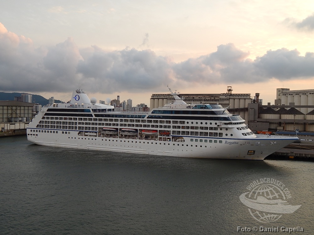 O Regatta esteve no porto de Santos no último domingo. O navio da Oceania Cruises protagonizou a última escala em trânsito da temporada na cidade, durante cruzeiro internacional pela América do Sul iniciado em Buenos Aires no fim de fevereiro.