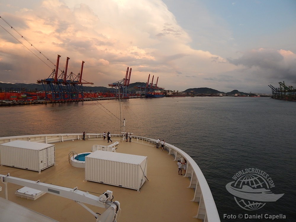 A cruzeiro total, no entanto, é divido em trechos menores. O que passou por Santos começou em Buenos Aires no dia 28 de fevereiro, e tem como destino final o Rio de Janeiro. O trecho compreende 12 das 73 noites totais, e escala, além de Santos e Rio de Janeiro, cinco portos brasileiros. Também inclui passagens pelo Uruguai, além da Argentina.