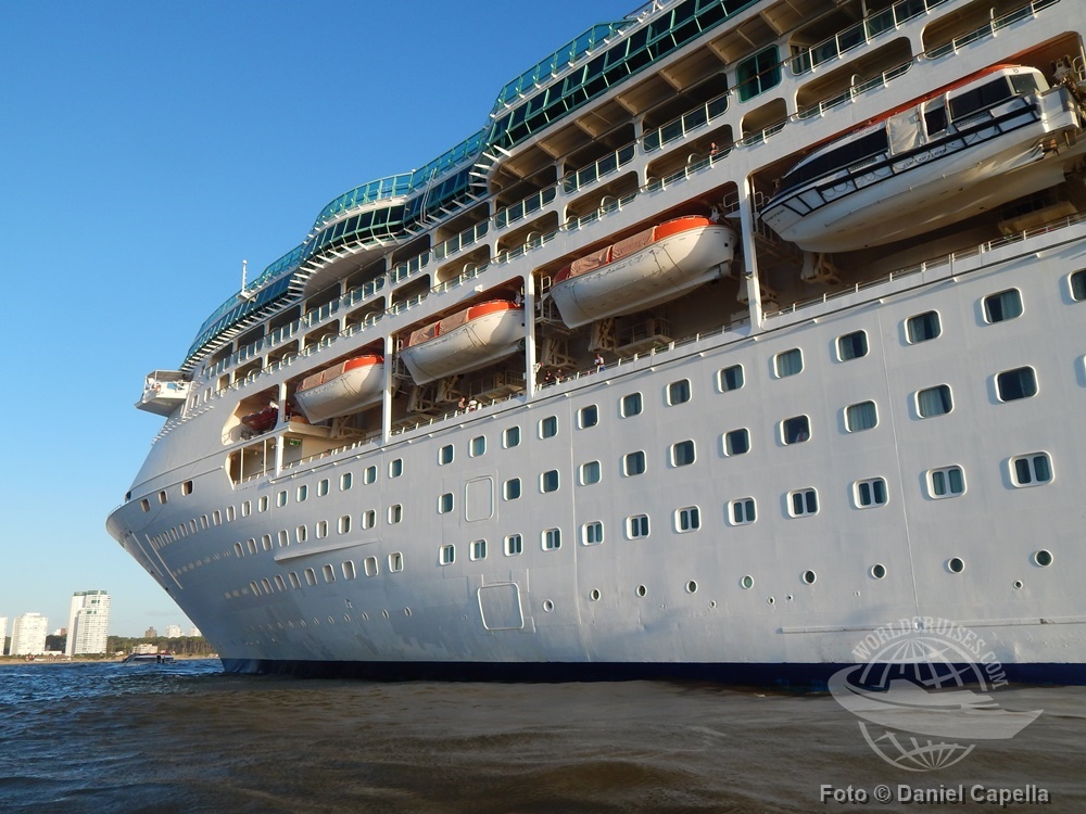 O Rhapsody of the Seas esteve fundeado em frente a Punta del Este no último 26, durante um de seus cruzeiros pelo Prata com partida de Santos. Único navio da Royal Caribbean International na América do Sul nessa temporada, passou cerca de nove horas na cidade após atrasar a saída devido às condições climáticas.Em sua temporada inaugural na América do Sul, o Rhapsody of the Seas visitou Punte del Este no último dia 26. Realizando um cruzeiro de 7 noites a partir de Santos, iniciado no dia 24 de janeiro, o navio ancorou em frente ao balneário uruguaio às 10 horas, duas horas antes do horário previsto por catálogo, e seguiu fundeado até o começo da noite, atrasando sua saída rumo a Buenos Aires por motivos climáticos.