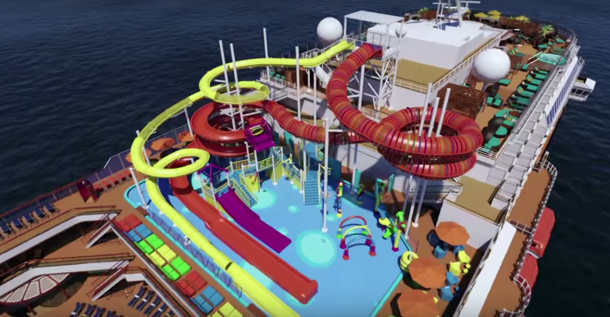 Com os toboáguas, o Liberty realizará roteiros pelo Caribe a partir do porto de Galveston, no Texas.