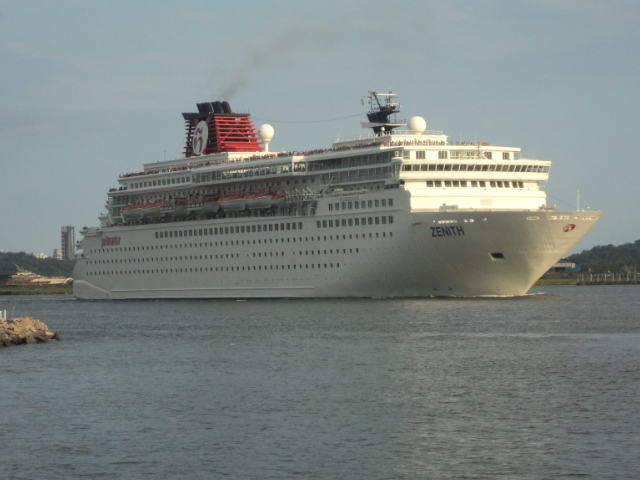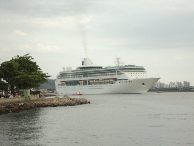 Neste Domingo o Porto de Santos três navios: Empress, Zenith e Splendour of the Seas. Todos eles, são de companhias de propriedade da Royal Caribbean International. O Splendour da companhia matriz, a Royal Caribbean, e o Empress e o Zenith da subsidiária espanhola Pullmantur, representadas no Brasil pela CVC. Hoje, os navios chegaram mais tarde que o comum, por volta das 08 horas, o Empress em especial, chegou por volta das 13, como já noticiado aqui (clique para ver). Já suas saídas, as primeiras do ano em tempo bom, se deram também depois do horário previsto. O Zenith que a princípio sairia as 17:30, só o fez as 18:28. Já o Splendour, deixou a cidade as 19 horas. O Empress, por conta de sua chegada, só seguiu viagem as 21 horas e 13 minutos.