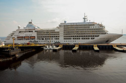 O maior e mais novo navio da Silversea, companhia de cruzeiros de luxo originária da Itália, esteve em Manaus pela primeira vez no final do mês passado. Em cruzeiro pelo Caribe e Amazonas, o navio levou 502 passageiros à capital amazonense, e permaneceu atracado no porto da cidade por duas noites.