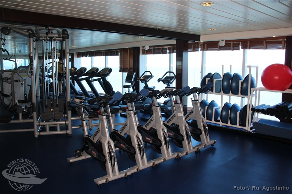 O salão fica na proa, no andar mais alto do navio, e possui paredes de vidro. |