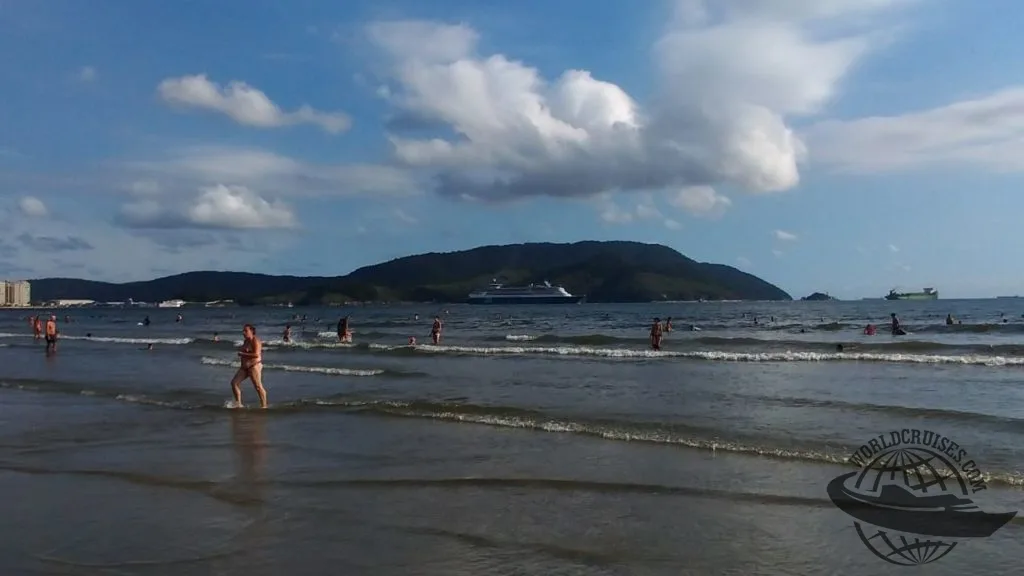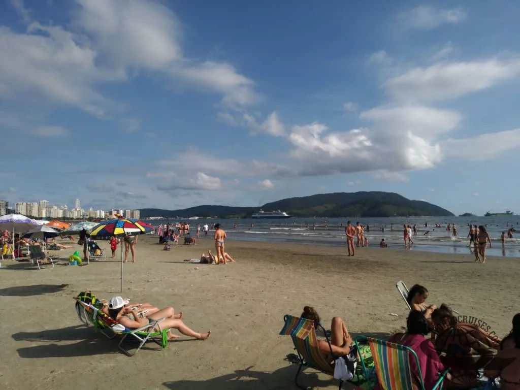 Nas fotos, o navio é visto deixando o porto de Santos na tarde ensolarada do dia 5.