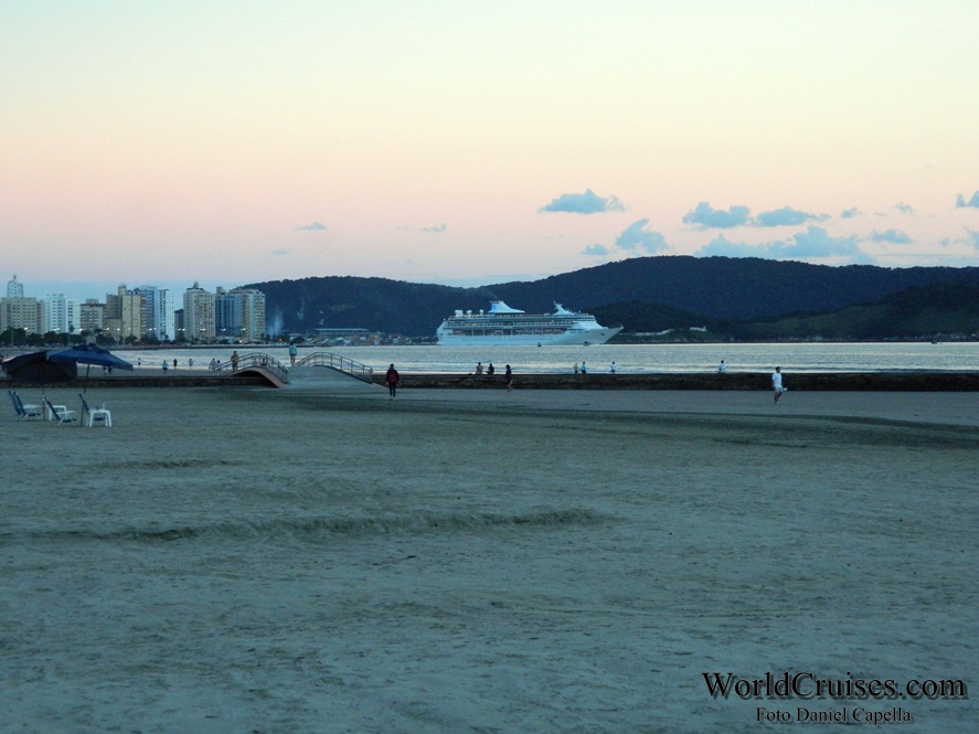 Na segunda-feira, dia 22 de Abril, o Splendour of the Seas, da Royal Caribbean Inter- national, esteve em Santos, e encerrou a temporada 2012/2013 de cruzeiros no Terminal de Passageiros Giusfredo Santini, o Concais, em Santos. O Splendour era o único navio a continuar na América do Sul desde que o Empress partiu para a Europa, há cerca de 10 dias. Agora, segue os passos de seu ex-companheiro de frota.