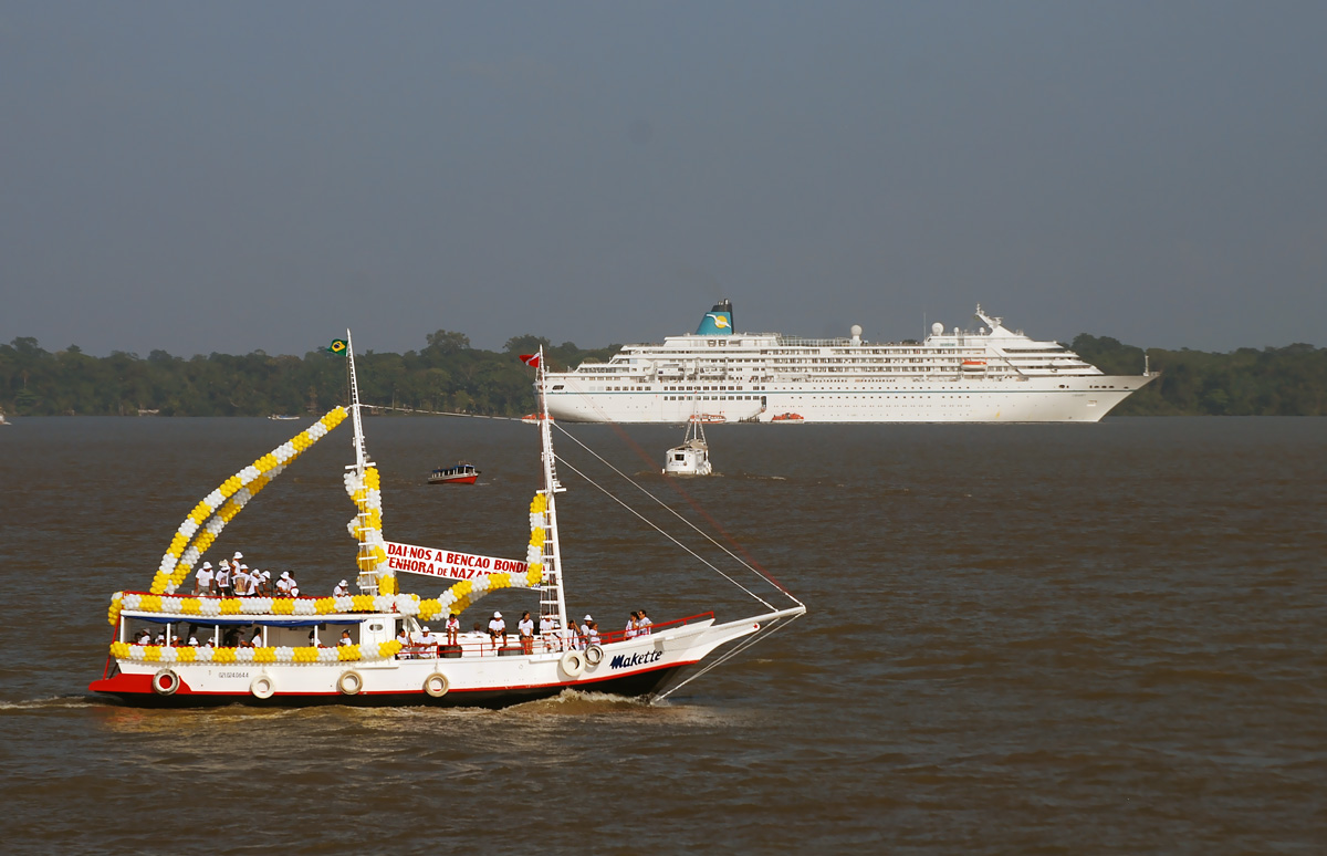 Mais uma vez, Belém foi a primeira cidade do País a ser escalada por um navio de cruzeiros nesta temporada. Ano passado o Albatros, da Phenix Reisen foi quem teve tal primazia, desta vez o Amadea, da mesma empresa, iniciou a temporada, fundeando na baia do Guajará neste Sábado, por volta das 07:00h local, com mais de 600 turistas a bordo, após a travessia do atlântico, a partir de Cabo Verde. Por coincidência, o navio chegou a Belém no mesmo dia da Romaria Fluvial do Círio de Nazaré, quando centenas de embarcações enfeitadas cruzavam a baia do Guajará conduzindo a imagem da padroeira da cidade, proporcionando aos turistas um espetáculo diferente. Na ocasião, a cidade encontrava-se tomada por turistas vindos de todos os cantos do país para participar do Círio de Nazaré, no dia seguinte. Ao anoitecer do mesmo dia, o Amadea partiu com destino a Manaus onde deverá chegar no dia 18/10, escalando antes em Macapá, Santarém, Boca da Valéria e Parintins.