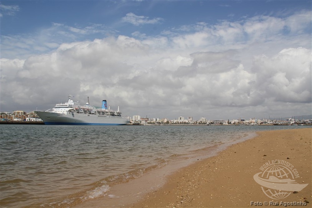 Um dos cinco navios da Thomson Cruises – companhia que recentemente recebeu o Splendour of the Seas em sua frota, o Thomson Spirit esteve no porto de Portimão nesta semana. O porto do Algarve, região sul de Portugal, é uma das paradas dos roteiros regulares que o navio fará a partir de Málaga (Espanha), durante esta temporada de verão europeu.