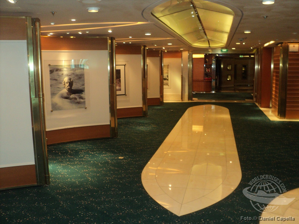 Antes da grande reforma pela qual o navio passou em 2014, a área era cheia de esculturas e detalhes em vidro e mármore. |
